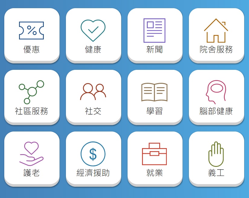 根據調查所得,新長青網重新設立12個長者最關注的主要欄目,為老友記提供更多元的資訊和服務: