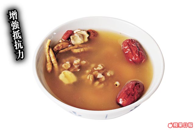 太子參及淮山健脾益氣。紅棗養血,增強抵抗力。 血虛體質:面無血色、唇白指甲白、易頭暈。 杞子 保護肝臟 味甘,擅補肝腎,具安神養血、滋陰壯陽功效。 材料 太子參 5錢、蓮子/淮山/花生/合桃各 1両、杞子 3錢、紅棗 10粒、鹽適量 做法 1.所有材料洗淨後,浸水 10分鐘。 2.將材料放鍋中,加水至蓋過食材約 2吋。 3. 煲滾後轉小火煲 3小時,加鹽調味即成。 資料來源︰蘋果日報2011年5月24日 0 0 0 書籤 留言 (0) 登入即可留言