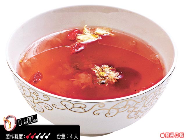 這個提神益氣、補肝腎醒腦養血的花果湯,能令面色紅潤,每天飲用直至效果滿意為止。 材料 花旗參/山楂/杞子各 10克、車厘子肉 100克、白菊花/雞蛋花各 8克、水 1公升、蜜糖 2湯匙 做法 1.山楂、杞子、車厘子肉、白菊花、雞蛋花加水浸 15分鐘。 2.除蜜糖外,將所有材料以大火煮滾,改細火煮 40分鐘。 3.隔渣取茶,待茶溫降至 60℃以下時,加蜜糖調味即成。 資料來源︰蘋果日報2011年08月06日 0 0 0 書籤 留言 (0) 登入即可留言