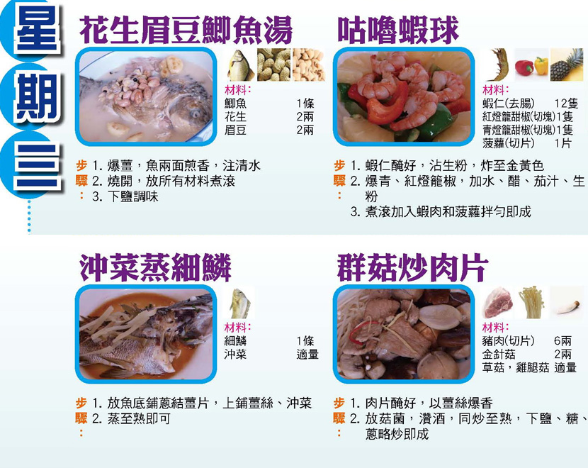 按此可閱覽英文、菲律賓文及印尼文食譜