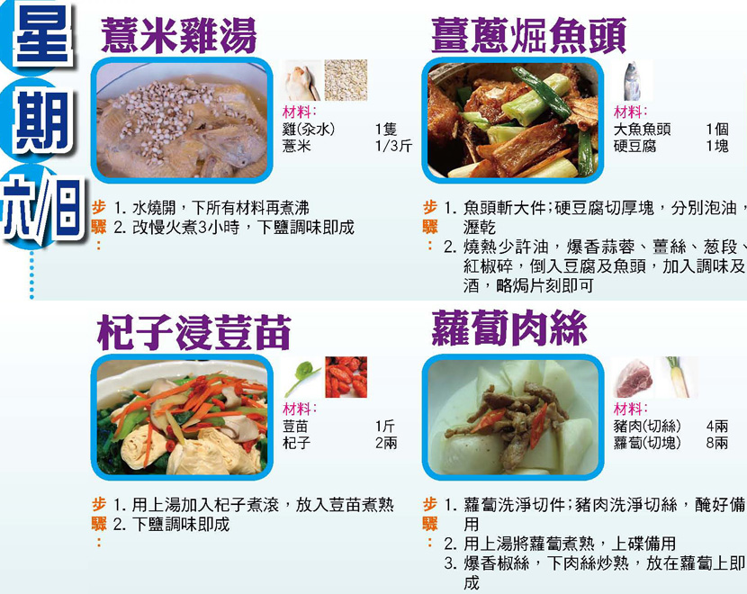 本週每日三餸一湯食譜推介: