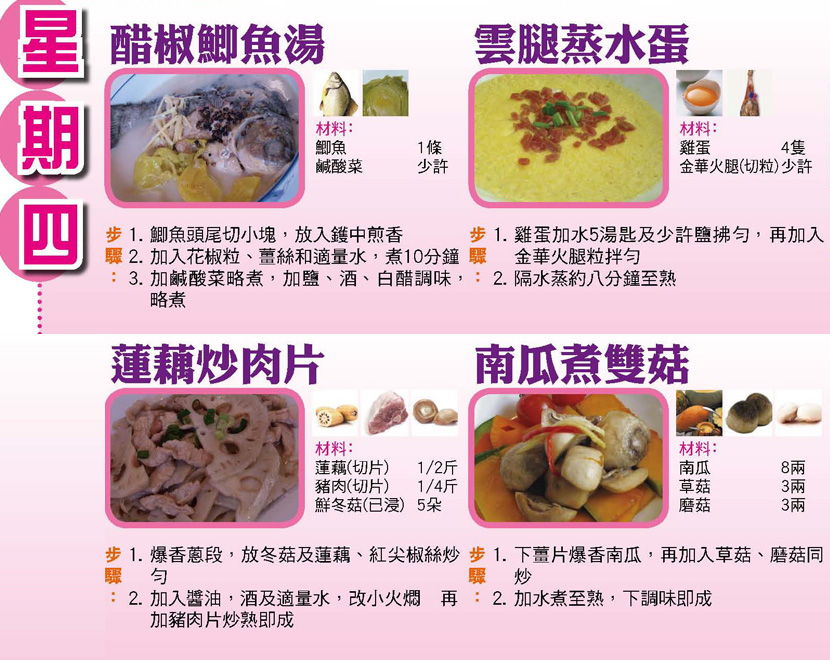 本週每日三餸一湯食譜推介: