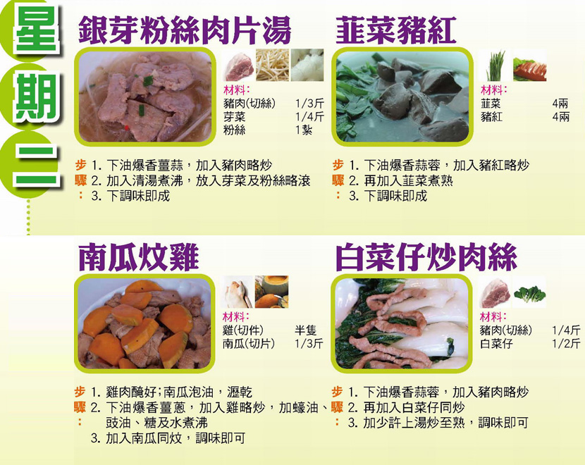 食物環境衛生署誠意向公眾推介''今日買乜餸'',好讓各位從此無需傷腦筋,輕輕鬆鬆煮好每一天!為照顧各人士的需要,食譜附有中文、英文、菲律賓文及印尼文供參閱。