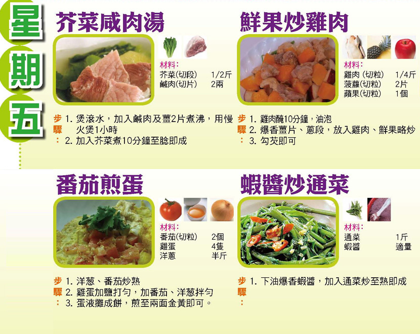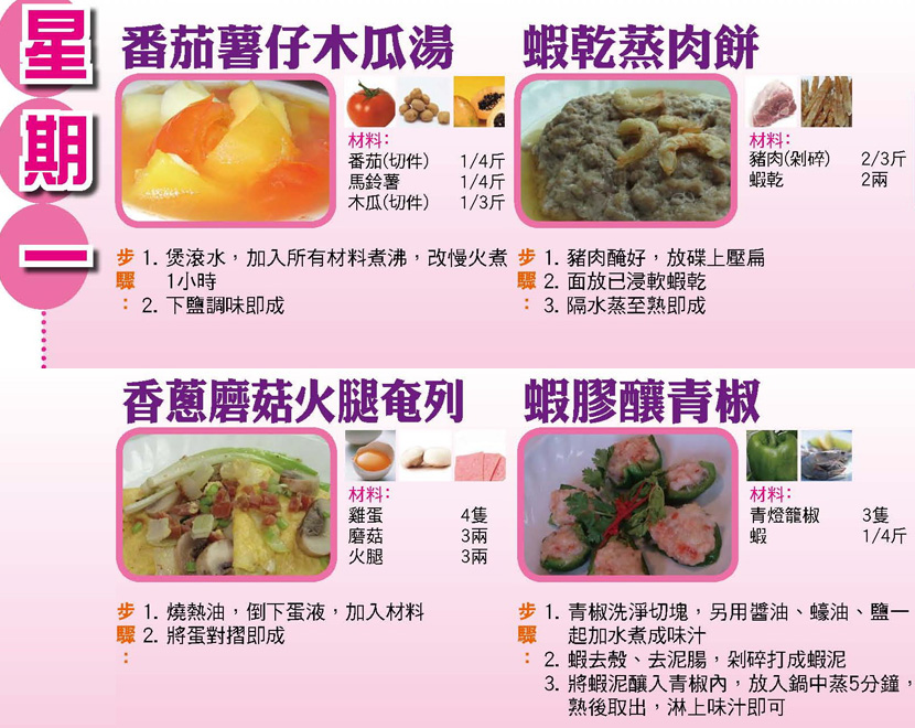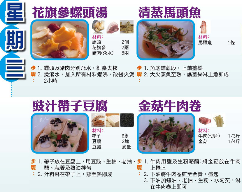 本週每日三餸一湯食譜推介: