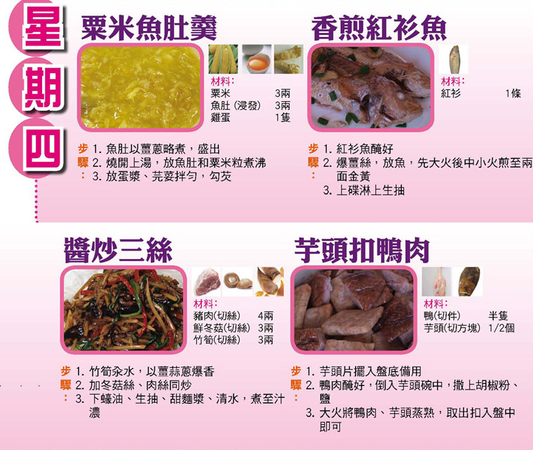 本週每日三餸一湯食譜推介: