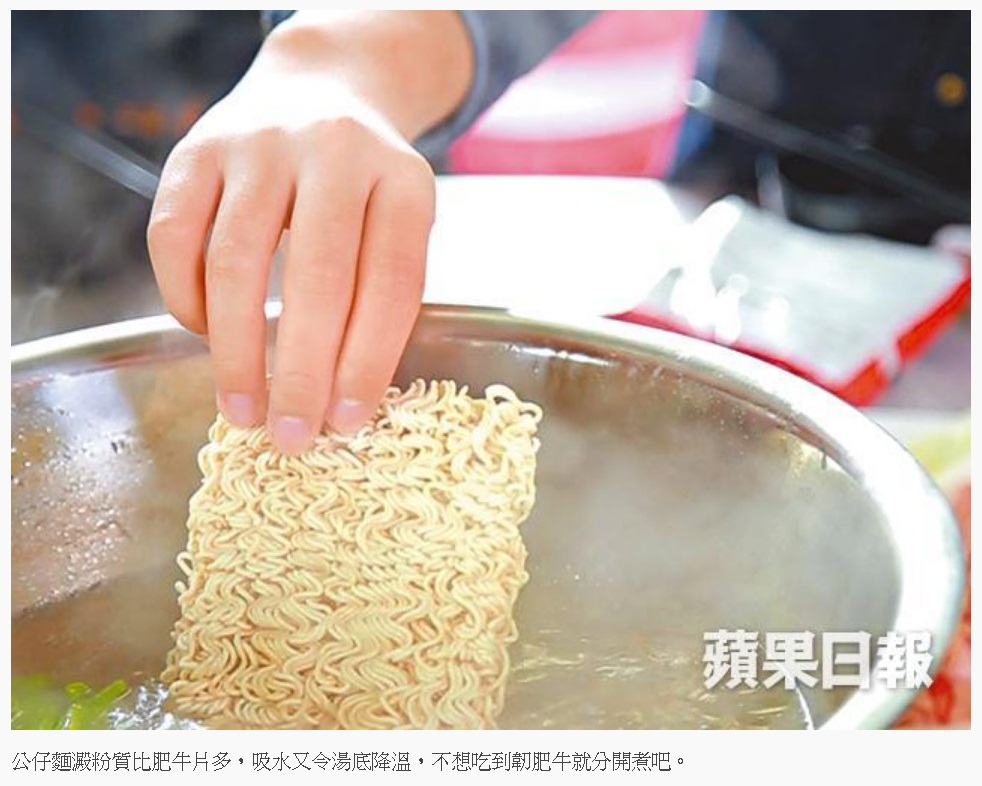 另一引起討論的,是卡通片中姐姐說肥牛片不能黏到麵條,因為麵的澱粉質和蠟質會令牛肉變硬。這一點聽起來半真半假,方博士卻認為這一點有道理,「兩者一起煮食,的確有機會令牛肉變硬,但非因蠟質。」她同意由於麵的澱粉質比肥牛片多,因而吸水比較快,而且煮麵時,澱粉質吸水令湯底降溫。「這時我們加入肉類,自然會因溫度和水份改變的原故,令肥牛片需要煮得較長時間才熟,吃上去口感會老身粗糙。」因此建議可以分開煮,以便控制肥牛的煮食時間。
