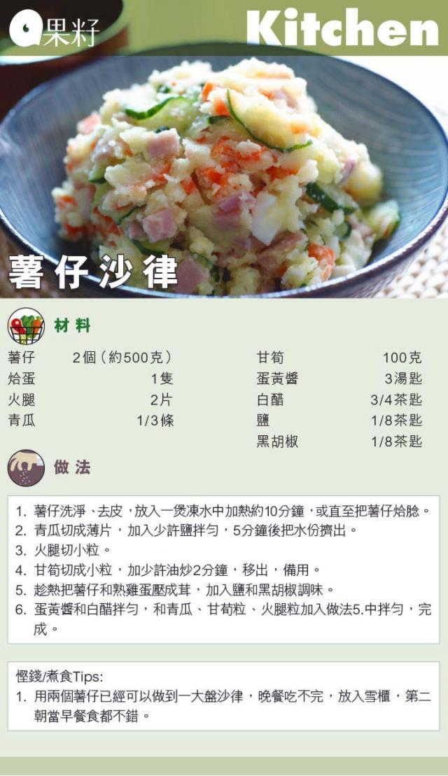 夜晚想食住家飯煮幾味,但又不想放工趕買餸?好好利用假期買定急凍肉類和耐放的蔬菜,放工直接回家下廚,同家人分享窩心又營養豐富的晚餐,完全無難度。急凍的肉類,早上出門前放在雪櫃下格,晚上回家便可直接處理了。今次米太會示範用便宜又有益的急凍鯖魚和三文魚骨;一些耐放的蔬菜如青瓜、翠玉瓜、甘筍;雪櫃常備的食材如雞蛋、火腿和昆布,來做一頓經濟又簡易的和風晚餐──三文魚麵豉湯、薯仔沙律、鹽燒鯖魚,為自己和家人打打氣。