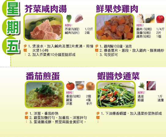 本週每日三餸一湯食譜推介: