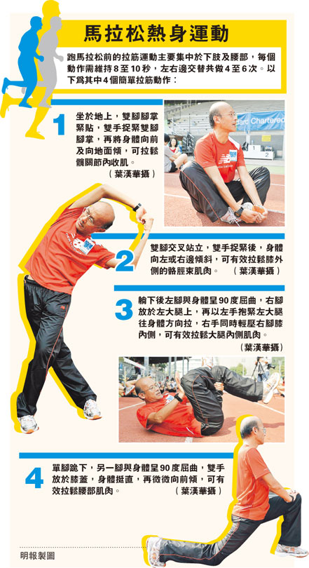 渣打馬拉松明年2月舉行,參加者最遲要於本月展開訓練,但必須注意要「練得其法」。理大康復治療科學系副教授楊世模指出,練跑者最常出現後發性肌肉痠痛,如輕視痠痛,繼續劇烈運動可致受傷,影響訓練進度及比賽。跑手宜於訓練後多做拉筋、慢跑等以放緩肌肉,以最佳狀態迎戰。