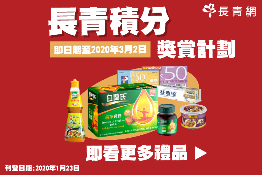 「長青積分獎賞計劃」最新一期的獎賞禮品揭盅喇!長青網粉絲們可以於2020年1月23日起致電長青網登記換領。多項貼心優質禮品可供換領: