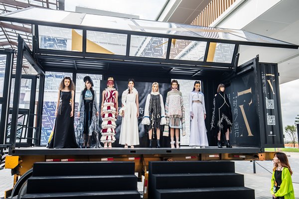 「大灣區---時尚‧出行」第三站選在深圳二元橋,模特兒穿上華麗時裝,踏上大會特製的貨櫃舞台,優雅自信,完美演繹學生獨特意念,令人目不暇給。