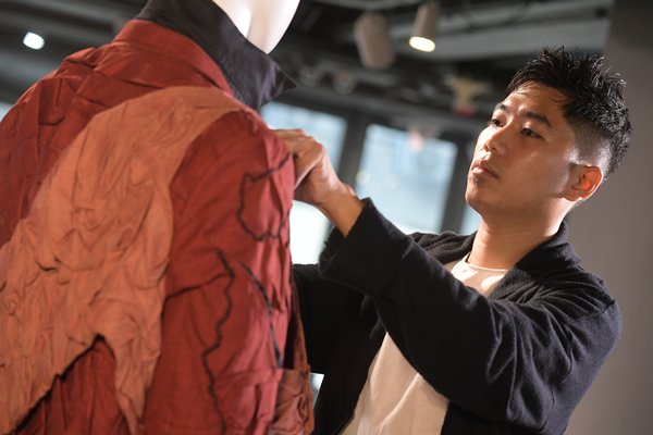 「我欣賞的一位設計師擅長把舊物重組成新衣,這次我也嘗試用舊布編成外套,實踐可持續環保的概念。」