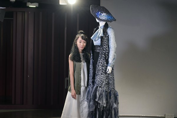 明愛白英奇專業學校設計學高級文憑(時裝設計)學生蔡家玲也參加了是次展覽,她的作品是一條女裝裙,特別之處在於外套由棄置舊布編織而成,糅合環保與創新。