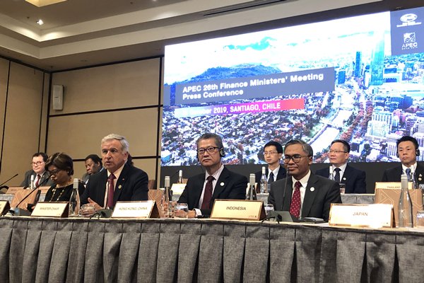 財政司司長陳茂波在智利聖地亞哥出席亞太區經濟合作組織財政部長會議,包括多個有關環球經濟展望和亞太區經濟持續發展的討論環節,以及會議後的聯合記者會。