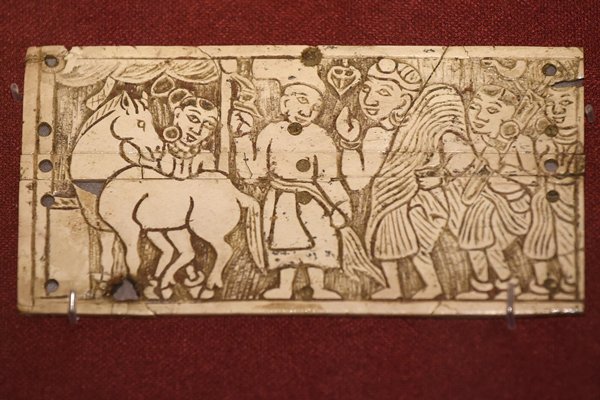 重點展品金腰帶在蒂拉丘地出土,九個金牌上的獅子姿態各異,盡顯工匠心思;另一文物西布莉圖案飾板在阿伊哈努姆皎的神廟遺址發現,飾板所刻的希臘母親神站在雙獅戰車上,英姿煥發。