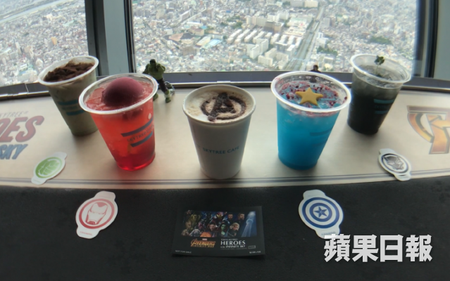 活動雖稱免費,但因活動在Skytree的天望迴廊舉行,上天望回廊須付錢。計計數,Skytree入場費2060円,上天望回廊1000円,所以總花費3000円。若你集齊場內六個check point蓋印,就可換取限定明信片。場內的熱鬧情況,可反映出日本人對Cosplay的投入程度,無論小朋友或大人,在場內見到起碼超過20個Cosplay裝扮。另外,場內還有個有趣遊戲,在活動中會出現一個蟻人縮小後等身大的模型,要客人嘗試找出來,可惜最後我找不到。最後,我嚐了五種場內特飲,而只有鐵甲奇俠、美國隊長和黑豹那三杯才好喝,Hulk那杯更加是伏。