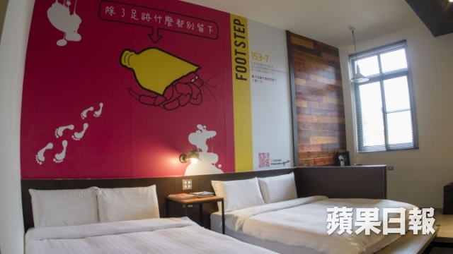 「很多人會認為一進來一定會有所謂廢水回收系統,太陽能省電系統,但說真的我們都沒有。」走進大廳,設計頗有工業風。沿旋轉樓梯爬上二樓才,房間都以海洋為主題,布置簡潔有玩味,牆上不是有關小琉球的生態,就是叫你注意保護小琉球生態的一些提醒。正男的環保民宿理念不是用錢堆砌出來,而是希望可以改變大家,一起源頭減廢,「事實上我們也沒這麼多錢去設置那些環保設施,我希望能作為一個示範,讓島上其他觀光業者知道這種做法還是可以經營的,成本不用很高,令更多民宿模仿。環境問題其實需要透過我們自發性的改變來解決,才有辦法幫助這個小島。」