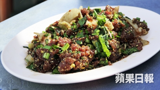 當地人有吃生肉的習慣,其中一道菜式名為Koi。在街邊檔看見當地人將生牛肉和生牛百葉攪拌,加入芫荽、葱、青檸和辣椒。這樣不算很特別,因為其他國家如韓國亦有生牛肉菜式,但檔主接下來加入一支新鮮牛血,整道菜頓時變得血淋淋,對我而言有點反胃,更遑論放進嘴裏。問過幾個當地人,他們就解釋吃生肉和牛血是為了新鮮,覺得煮熟會影響食物質感。他們還會以生豬肉和生魚炮製這道菜,過去就有報道指出,生食這兩種食物有機會感染寄生蟲。如果吃不慣生肉,可以考慮將相同的材料炒熟食用,炒肉碎名為Lahp,佐飯一流。