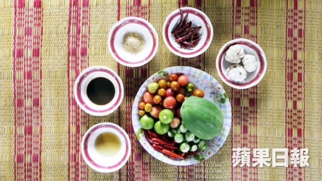 要做正宗青木瓜沙律,首先要有一個黏土製的研缽和一支木杵。正宗的青木瓜沙律名為Som Tam Lao,材料包括魚露、發酵魚醬、大蒜、番茄、青檸、青茄子、辣椒及青木瓜等。先放入蒜、辣椒樁碎,加入醬汁,切碎材料逐一放進去,一邊樁一邊攪拌直至均勻。伊善菜與泰式青木瓜沙律做法的不同之處,是加入發酵魚醬,發酵足足六個月。很多伊善菜都會加入這種發酵魚醬,味道比蝦醬更濃烈,可以提升整道菜的鹹香;泰式則較着重甜味,會加入椰糖,較像香港人的口味。至於食材,除了青木瓜、車厘茄、青檸等食材,伊善人還喜愛加入青茄子,而泰式則會加入花生碎。時至今日,這道菜可以按喜好加入不同材料,包括豆角、鹹蛋、粟米、菠蘿及醃蟹等。